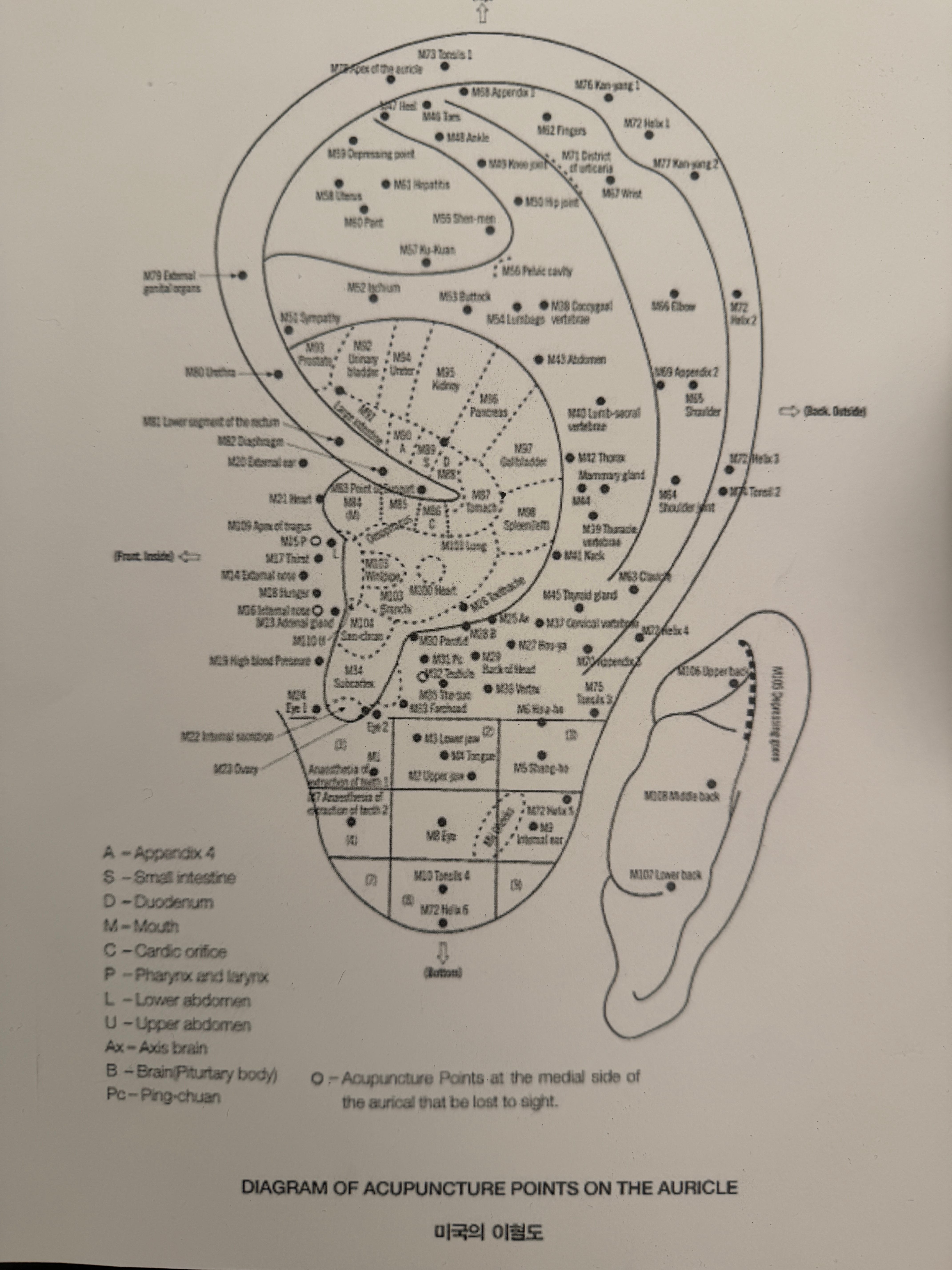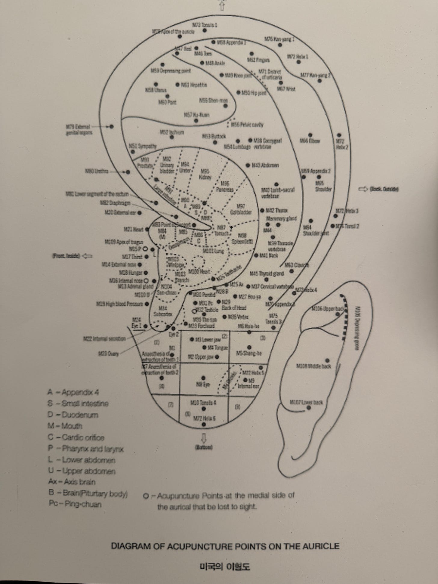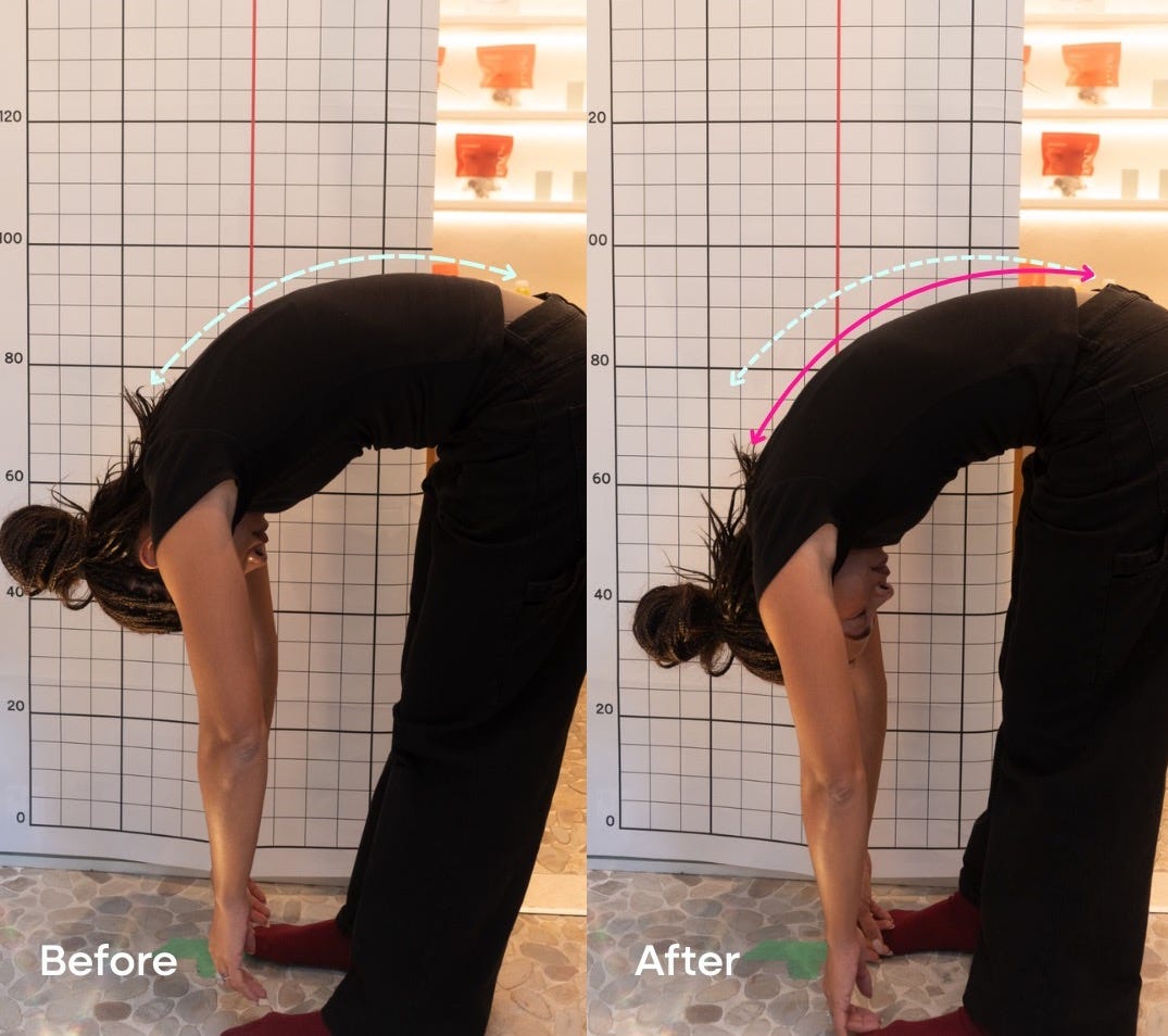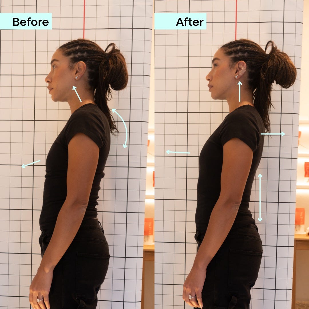 The acupuncturist had me take my shoes off and took photos of my posture: my side profile, bending forward, and bending back. When I bent back, I noticed some minor lower back pain. That pain was completely gone once she placed the ear seeds on me.